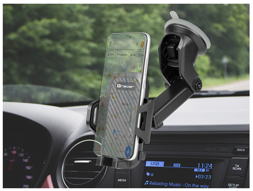 • Designed for smartphones with a diagonal of up to 7”. • Suction cup allowing to mount the device on the windshield or cockpit. • 170 mm extendable arm. • 270 degree rotation. • Tough and resistant material. • Stable grip. TECHNICAL DATA For car (Window): Yes For desk mount: Yes