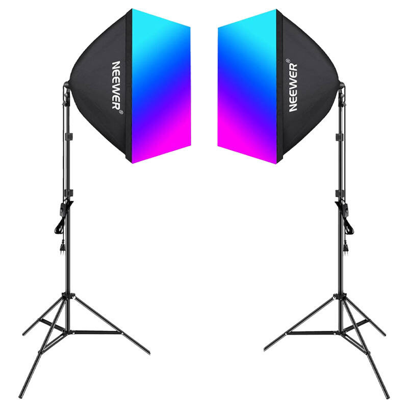 Neewer Kit NK800 kaks pehmenduskarpi + pirnid RGB 24W 2700-6500K + statiivid + barn doorid (B0CF55TW5J)