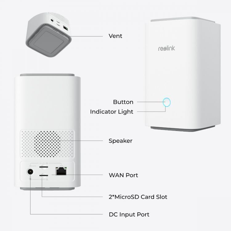 Home Hub acts as the brain of the surveillance system. It stores video footage on two microSD cards with a combined capacity of up to 1TB. The Hub creates its own WiFi 6 network, ensuring a fast and stable connection for the cameras. You can easily manage all cameras with a mobile app or PC software. In addition, the Home Hub includes a speaker that also acts as a doorbell.