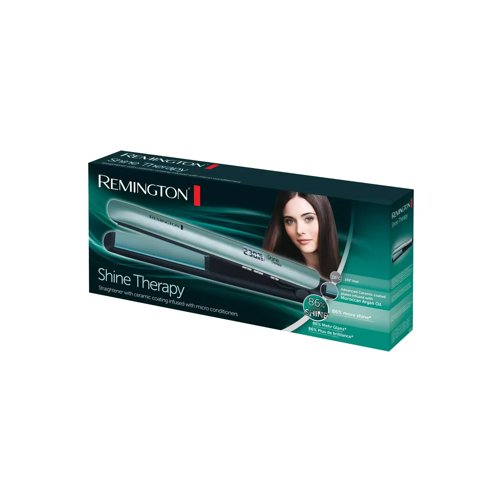 Remington S8500 Shine Therapy juuste sirgendaja on mõeldud loomama täiuslikult siledad ja läikivad juuksed minimaalse kahjustusega. Shine Therapy tehnoloogia kasutab argaania- ja mandliõlidesse imendunud keraamilisi plaate, mis toidavad juukseid sirgendamise ajal ning annavad pehmust ja läiget.