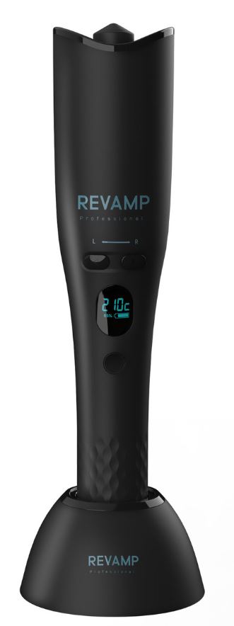 Cordless automatic rotating 19mm barrel for big waves and soft curls Lithium-ion battery for up to 40 minutes of use from every 4-hour charge Right and left-hand rotation for easy, symmetrical styling Ceramic and ionic barrel infused with Progloss™ super smooth keratin, argan and coconut oils Advanced intelligent heat control for minimal hair damage Ultra-fast digital variable heat settings from 150°C to 210°C for all hair types New, improved design with LCD display Pro charge stand, USB charging cable Take your curl game to the next level with the Revamp iGEN Progloss™ Cordless Hollywood Curl Automatic Rotating Curler. Offering up to 40 minutes of curl time, this wireless wonder will give you bouncy barrel curls or tousled waves wherever you are. Simply leave it to charge on the accompanying pro charge stand (four hours for a full battery) and you’re good to go. Like its curling counterparts, this automatic rotating curler lets you choose a temperature setting from 150°C to 210°C – meaning you’ll only use the heat you need. The best part? It’s kinder to your hair than more traditional heated hair appliances. Featuring advanced heat monitoring, this clever curler continuously monitors and regulates the temperature of your hair to prevent it from overheating. The lithium-ion battery ensures optimal performance, and the hybrid ionic/ceramic barrel promises sleek, frizz-free styles that say no to flyaways. Infused with Revamp’s signature blend of keratin, argan and coconut oil, the barrel will leave your lengths with an undeniable shine and a soft-touch finish. Built with an LCD screen, this curler will display the remaining battery, so you’re never left without charge – just remember to top it up when it shows a lower level.