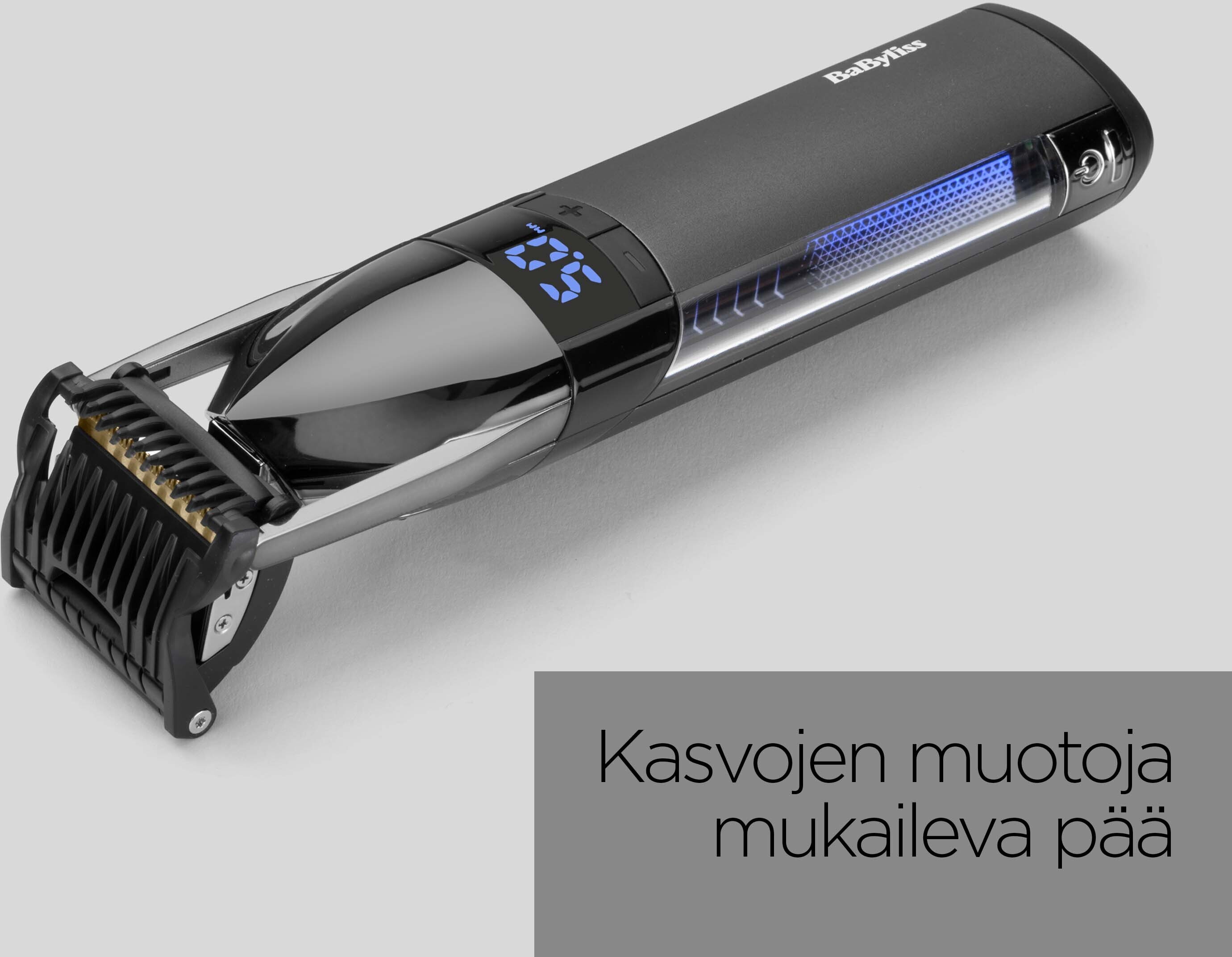 The Japanese steel blades are ultra-sharp for a smooth cut, while the flexible shaping trimmer head follows the contours of your face for added comfort and control.An LED display shows the trim length setting from 0.4-5 mm with precise 0.2 mm adjustment for excellent length control.Lithium-ion battery-powered cordless trimmer offers reliable, long-lasting use.