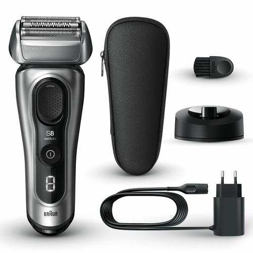 The powerful Li-Ion battery gives you up to 60 minutes of shaving time.Braun Series 8 8517s. Product colour: Silver, Control type: Buttons. Power source: Battery, Battery technology: Lithium-Ion (Li-Ion), Battery type: Built-in battery. Package type: Box. Quantity per pack: 1 pc(s), Shaver base station functions: Charging