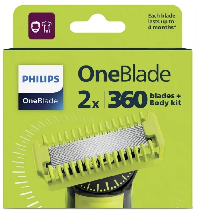 The Philips Norelco OneBlade QP624 / 50 replacement blade includes two shaving heads for accuracy and comfort. With a bright green and silver color, this blade is compatible with the OneBlade system, providing a smooth shave. It offers versatility for cutting, contouring and shaving hair of any length. The robust design ensures a long service life, making it a reliable choice for your care needs.