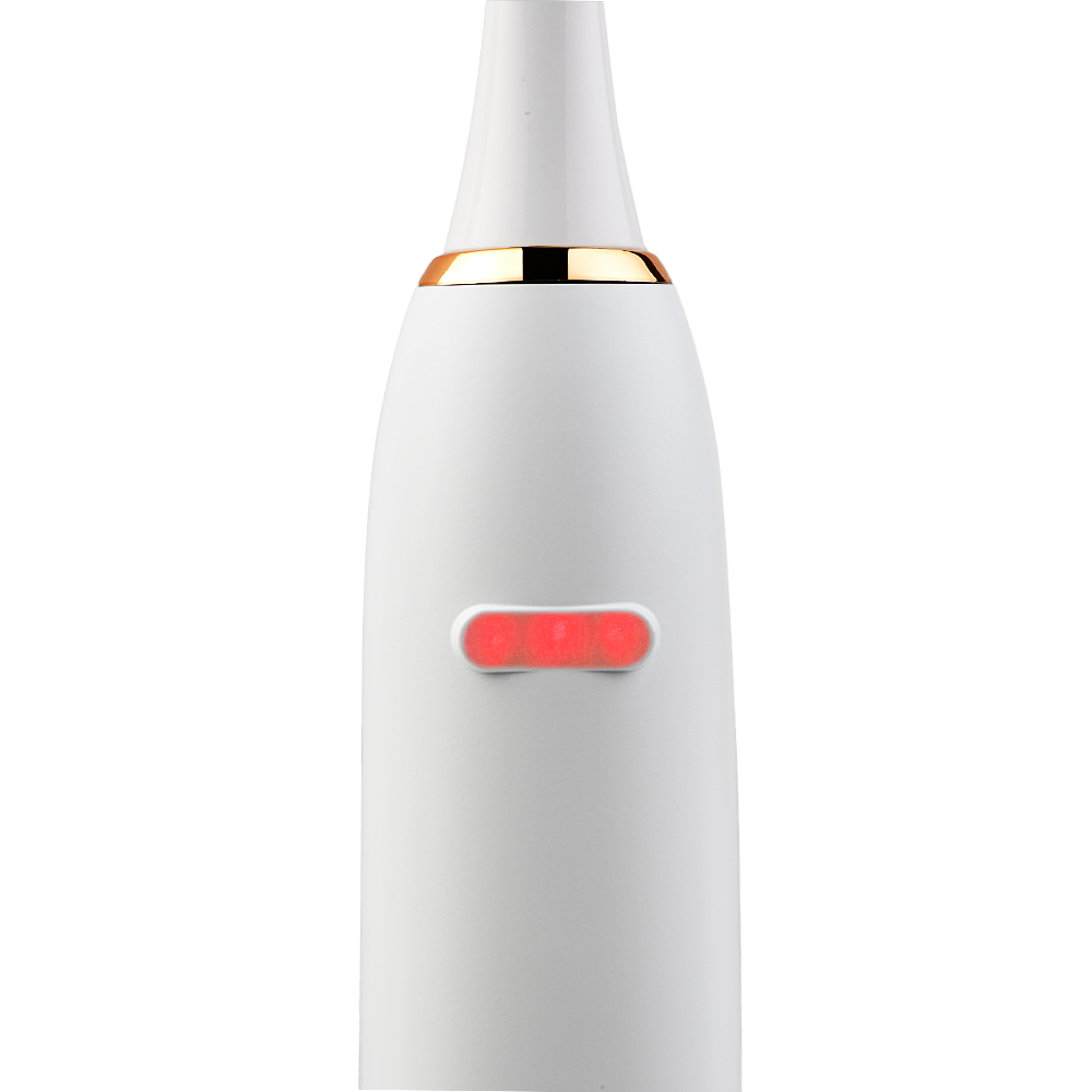 The Lovio SonicProtect PRO is an advanced sonic toothbrush designed for effective oral care. With its sonic vibration technology, it efficiently removes plaque and promotes gum health. Key Features: 5 Modes & 3 Intensity Levels: Customizable settings for personalized cleaning and optimal oral hygiene. Sturdy Mounting: Secure attachment of the brush head prevents loosening, ensuring stability during use. IPX8 Waterproof: Fully waterproof, resistant to immersion in water deeper than 1 meter, for reliable use in any environment. Pressure Sensor: Alerts with an LED light if too much pressure is applied, helping protect teeth and gums from damage. 5 Brush Tips Included: Includes soft, medium, and a special tip for face cleaning, catering to different preferences and needs. Inductive Charger: Simple, wireless charging with no risk of moisture damage. Travel Case: A compact, protective case for easy, safe storage and transport. This toothbrush is an all-in-one solution for optimal oral hygiene, comfort, and convenience.