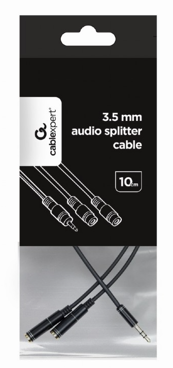The Gembird CCA-415-0.1M is a 0.1-meter audio splitter featuring a 3.5 mm stereo male plug and two 3.5 mm stereo female sockets. It is designed to connect two pairs of headphones or other audio devices simultaneously to a single audio source, allowing you to share music with another person without compromising sound quality. The cable comes in black and has a compact size, making it convenient for use in various situations.