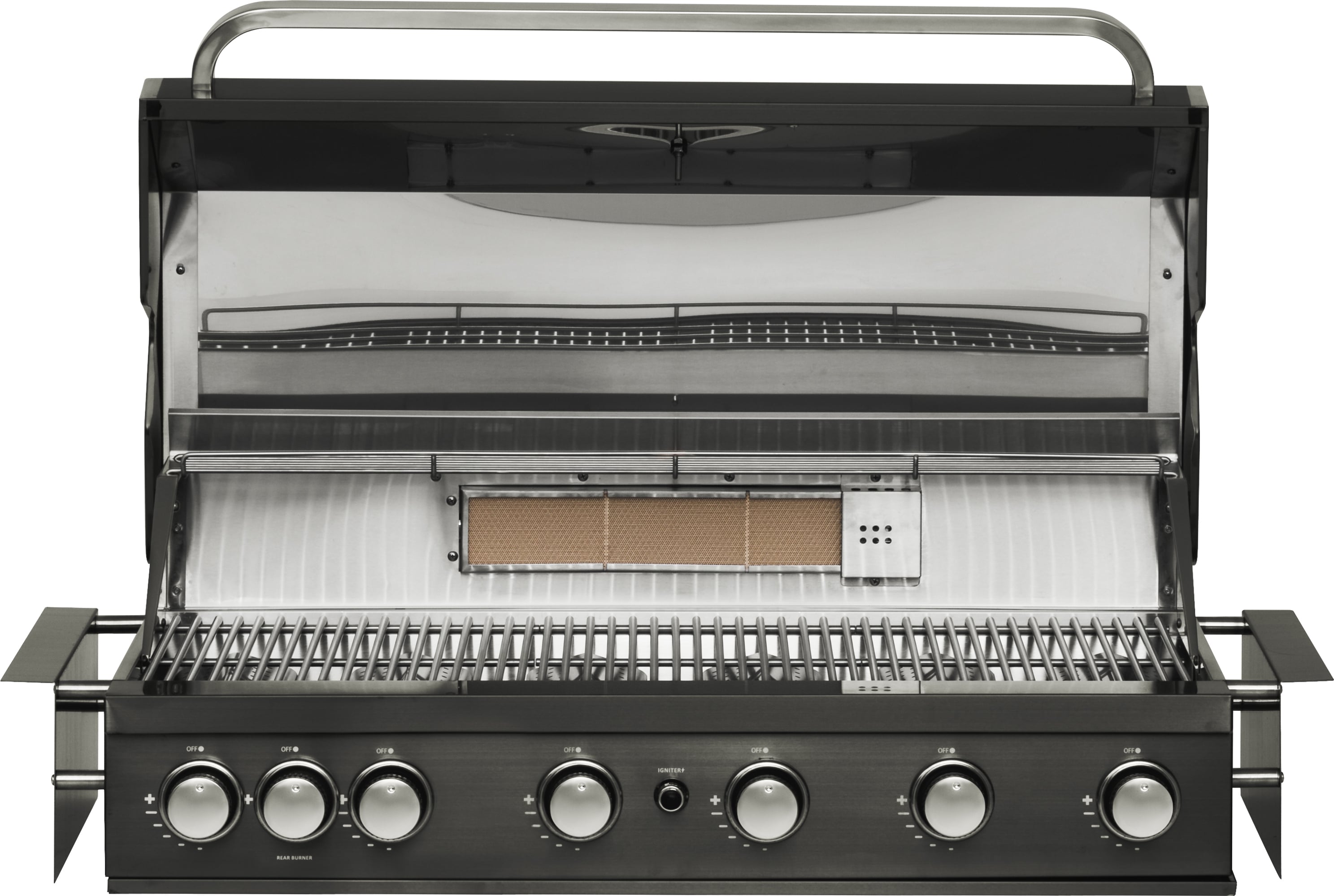 - Roasting cable opens in front of the grill