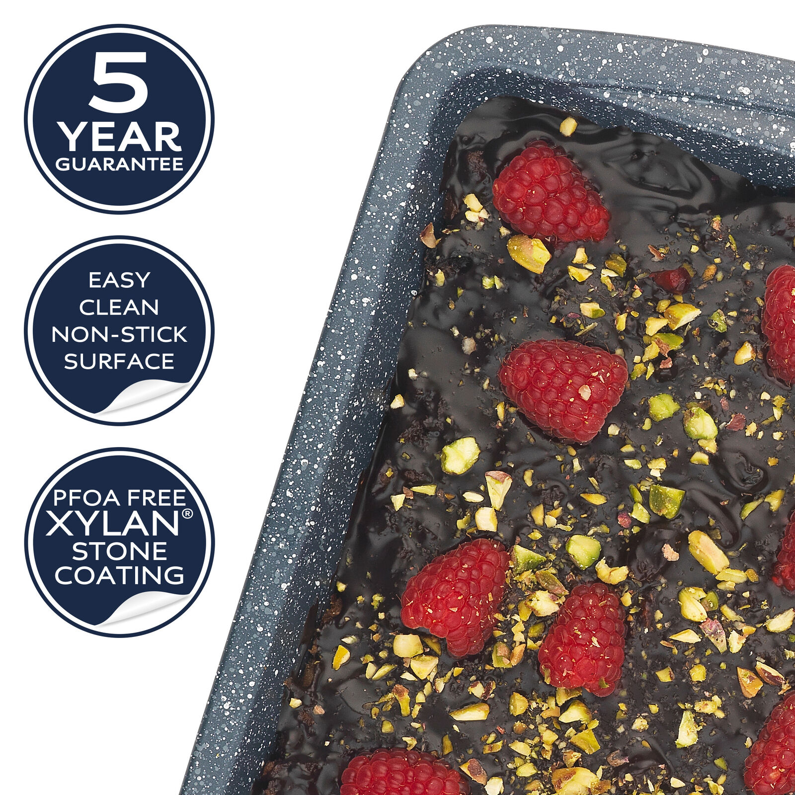 Russell Hobbs RH00997EU7 Nightfall stone square pan 26cm Description Bake delicious treats for your friends and family with this fabulous 26 cm square baking pan from Russell Hobbs, made from wonderfully durable carbon steel. The beautiful blue marble, PFOA free non-stick coating ensures that your food can be cooked using little to no oil. Once ready, your bakes can be released with ease and presented perfectly without leaving any leftovers. Once used simply hand wash in warm soapy water for an easy clean and use again to try out new creative cooking ideas. Features - Complete your kitchen set and bake tasty treats with this fantastic 26 cm square baking pan from Russell Hobbs, a must-have in any home. - Made from strong carbon steel with a blue marble coating the bakeware is brilliantly non-stick, suitable for any oven up to 220°C. - Measuring 26 cm in diameter, the square pan is perfect for making cakes, which can easily be released without crumbling or sticking. - Once finished cooking, simply hand wash in warm soapy water for a quick and effortless clean and store away easily in a cupboard. - Designed with the safety of your family in mind, this pan is 100% PFOA free, meaning no harmful chemicals are released when cooking. Size: 4.4 x 26.2 x 23.6 cm