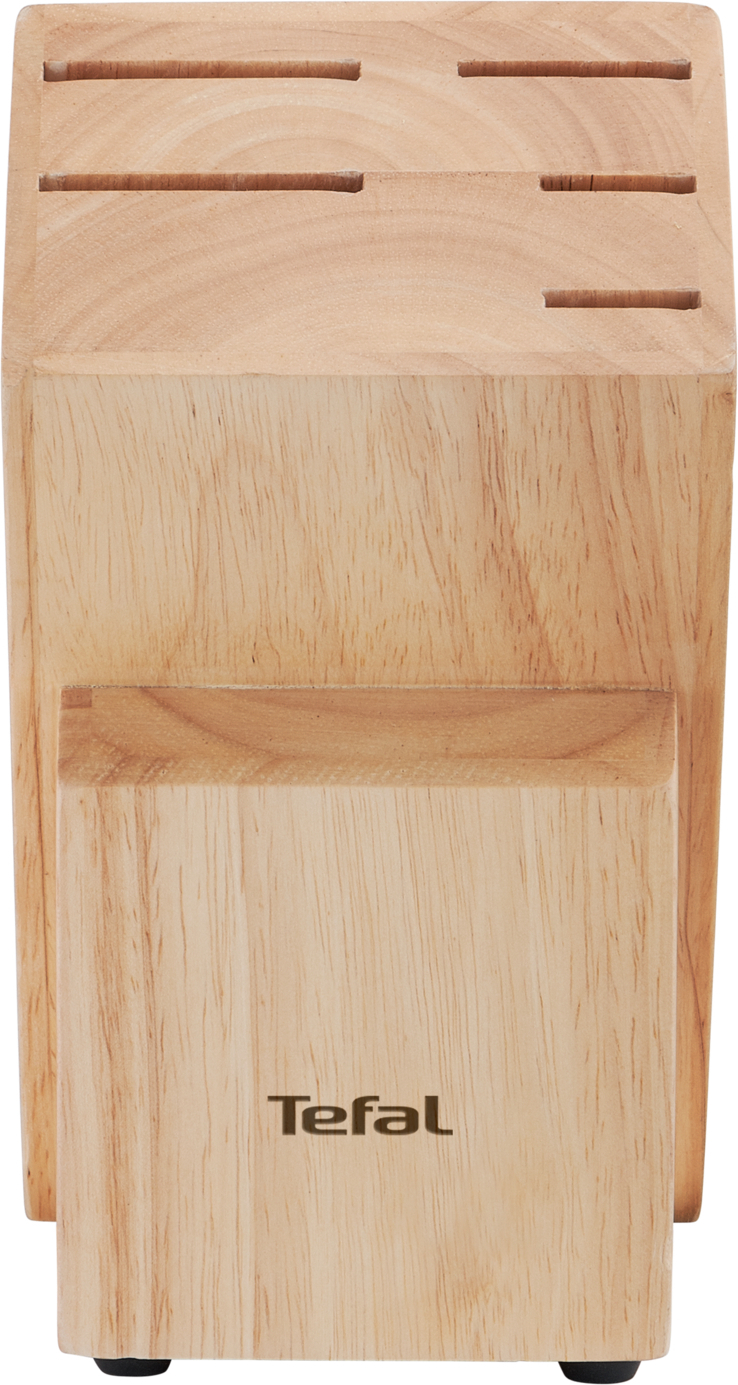 Tefal Ice Force kitchen knives cut with precision. They combine sharpness, durability and comfort to make cutting effortless and the result as good as possible. The set includes five multi-purpose knives to cover all your cooking needs. Whether it's cutting, slicing, chopping or peeling, the right knife is always within easy reach. The Tefal Ice Force knife set includes a wooden knife holder and five knives: a 20 cm chef's knife, an 18 cm chopping knife, a 20 cm bread knife, an 11 cm utility knife and a 9 cm vegetable knife. The knife holder keeps the knives organised and easily accessible, improving kitchen tidiness and safety. In addition, the wooden knife holder and the uniform knife set bring a stylish look to the kitchen.