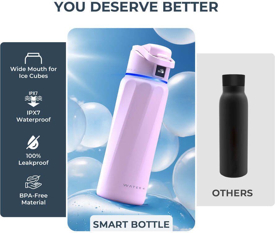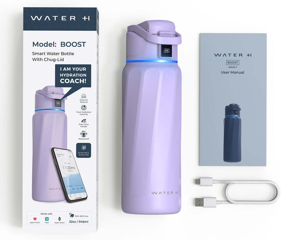 WaterH Boost is a smart water bottle that helps you stay hydrated all day long. The bottle features an LED touchscreen and 360-degree LED light to show you how much fluid you're drinking and remind you to drink regularly.