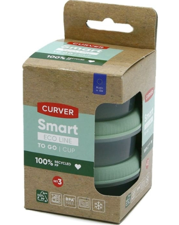 Curver 0800956Q19 on kolme ümmarguse kastmehoidja komplekt, igaühe mahutavus 0,08 liitrit. Valmistatud Smart Eco To Go sarja osana ringlussevõetud plastikust, need on pehme rohelise värvi. Sobib kasutamiseks mikrolaineahjus, külmikus ja nõudepesumasinas.