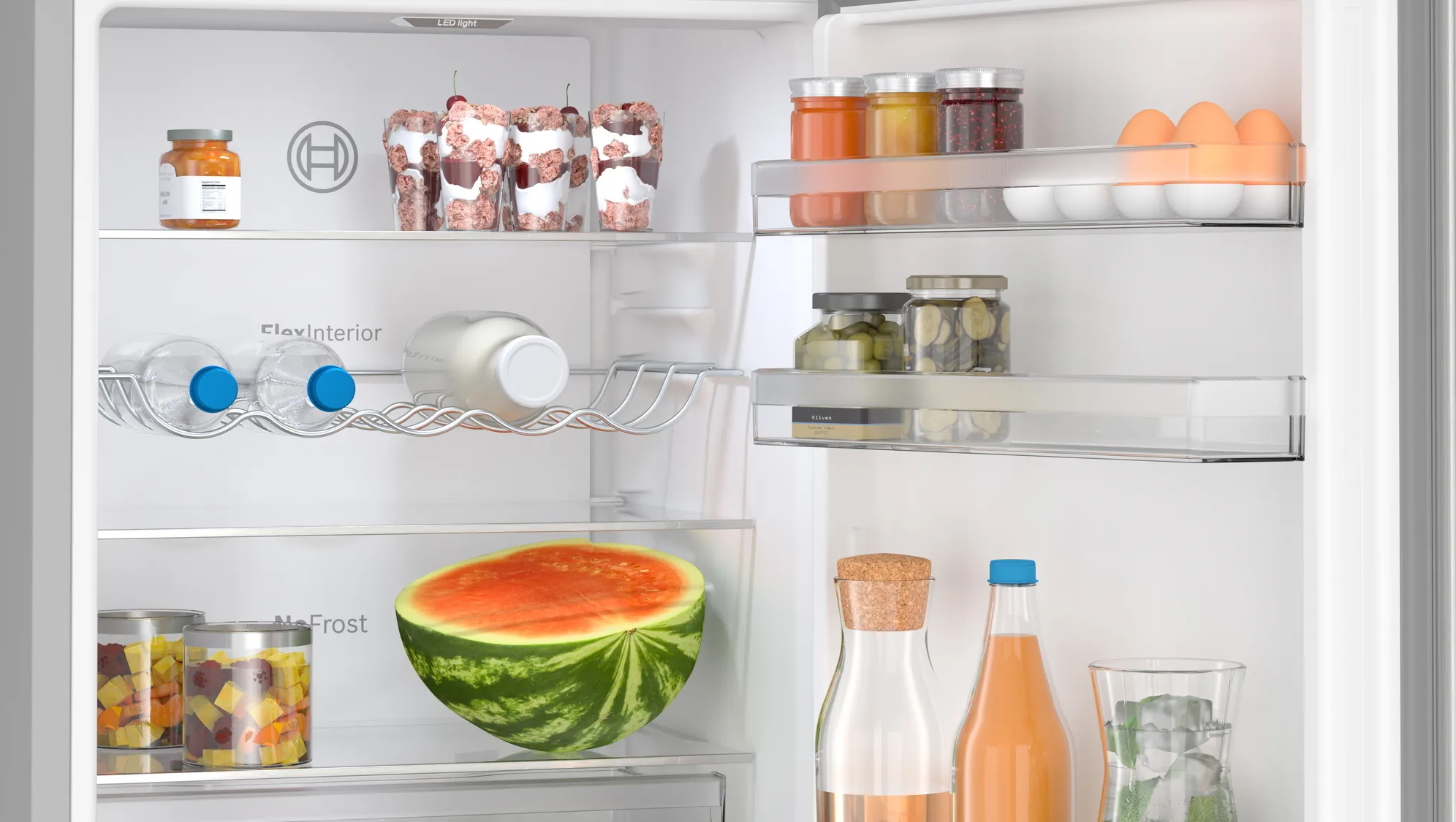 The Bosch KGN362LDF is equipped with No Frost technology, which prevents ice build-up and makes cleaning easier. This means you can forget about regular defrosts and enjoy more time for other things. The Multi-Airflow system ensures even temperatures and fast cooling, so food stays fresher for longer. The Super Cool function allows food to cool quickly, which is especially useful when you get home from the store.