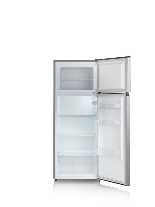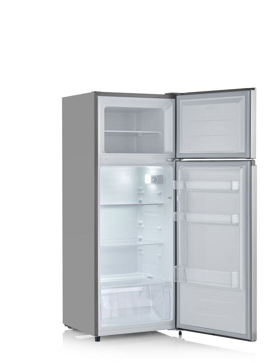 Energy efficiency class E with only 170 kWh / year Plenty of storage space thanks to 205 (164/41) liters of usable volume Modern LED lighting for pleasantly bright light and a perfect overview Large veggibox for storing fruit and vegetables separately Door hinge changeable Extremely quiet - 40 dB 4 star freezer 2x height-adjustable shelves Incl. Egg tray and ice cube tray Net weight: 39 kg Product dimensions (height): 1434 mm Product dimensions (width): 542 mm Product dimensions (depth): 550 mm