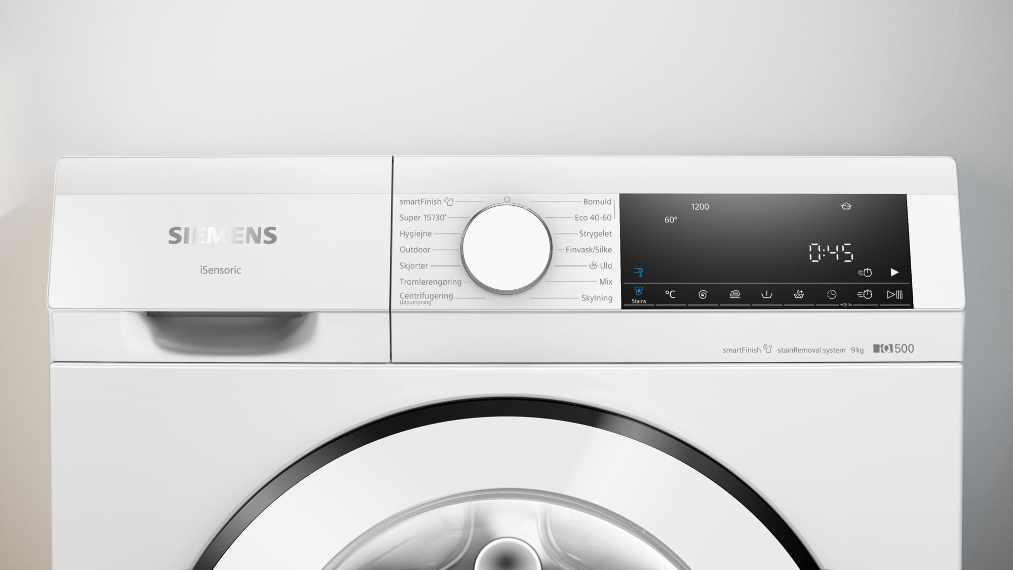 - Wash programmes: Cotton, Iron-on, Fine Wash, Wool/Hand Wash, Drum Clean, smartFinish, Shirts, Hygiene, Outdoor, Dehydration/Linkage, Mix, Rinse, Superfast 15 min / 30 min