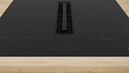 The integrated ventilation module combines the best of our induction cooktops and cooker hoods. Because it’s built into the cooktop surface, it draws away cooking smells and steam right where they start. This way, you don’t need a separate hood, and you have more overhead space for cabinets – or a clear view across your kitchen.