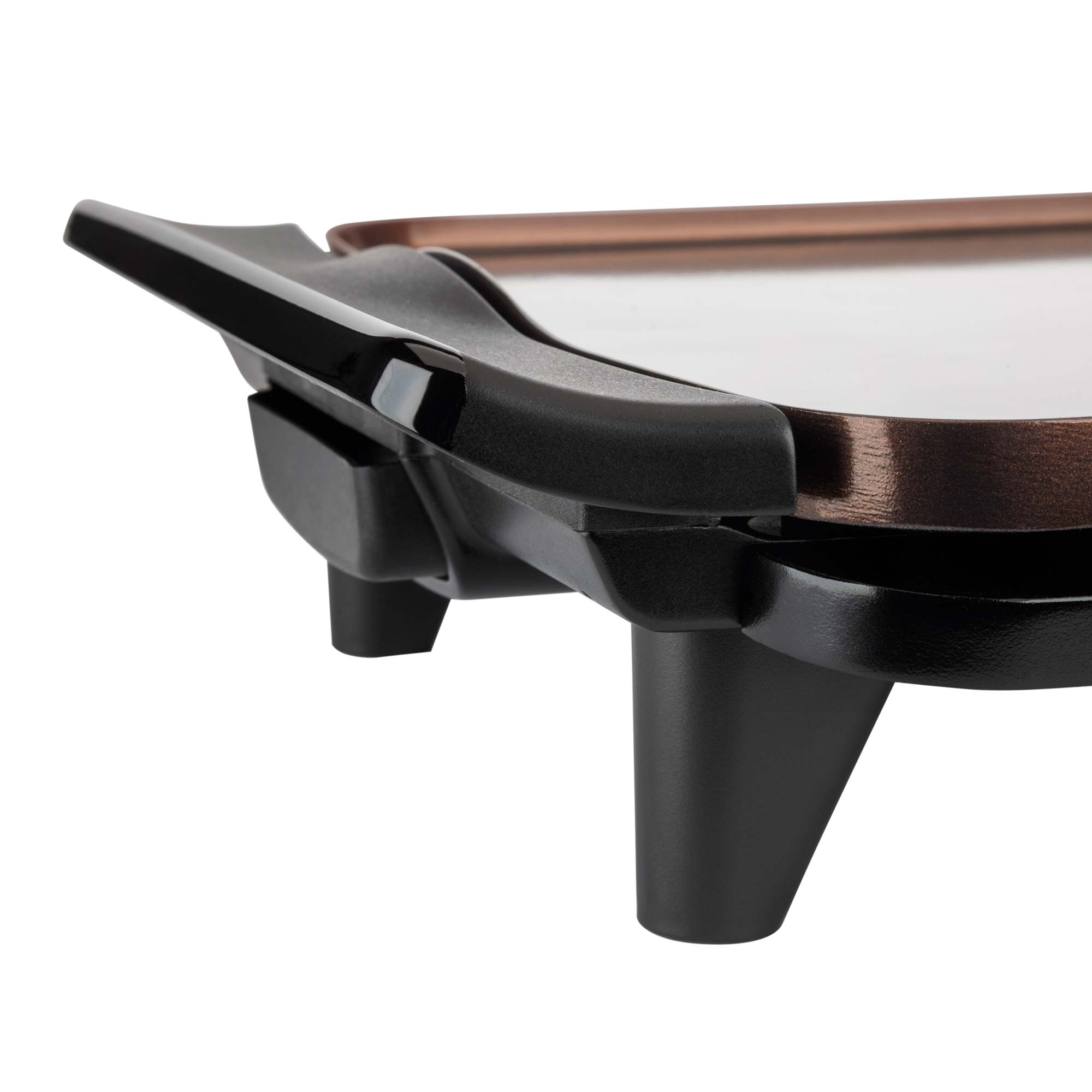 Features Slim design for easy storage Ergonomic handles XL sauce tray Terrastone super resistant non-stick coating High quality and very durable 3-layer non-stick The 100% PFOA-free and environmentally friendly coating High quality cast aluminum Heating element in “M”. Cooks in all the surface “Super Diet” system: To slope the plate and make easier the sauce collecting Sizes: 460 x 280 mm Removable adjustable thermostat of temperature Cold touch handles Table carrying Easy cleaning Voltage 230 V Power 2.500 W