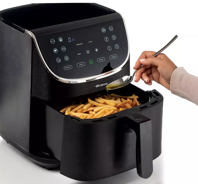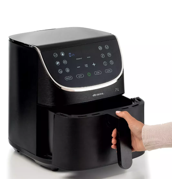 Airy Fryer 7L kuumaõhufritüüriga saad praadida mistahes toitu suurtes kogustes vaid lusikatäie õliga, muutes praetud toidu samal ajal tervislikuks ja maitsvaks. Suurt korvi kasutades saate "Ariete õhulise fritüüriga 7L" ühe toiminguga küpsetada kuni 2,8 kg kartulikõrt! Mitte ainult kartulikõrred – ka kroketid, kala, liha ja paljud muud paneeritud toidud, nii külmutatud ja küpsetamiseks valmis kui ka värsked, lihtsalt riivsaias veeretatud – see on võimalik kaheteistkümne eelseadistatud programmiga.