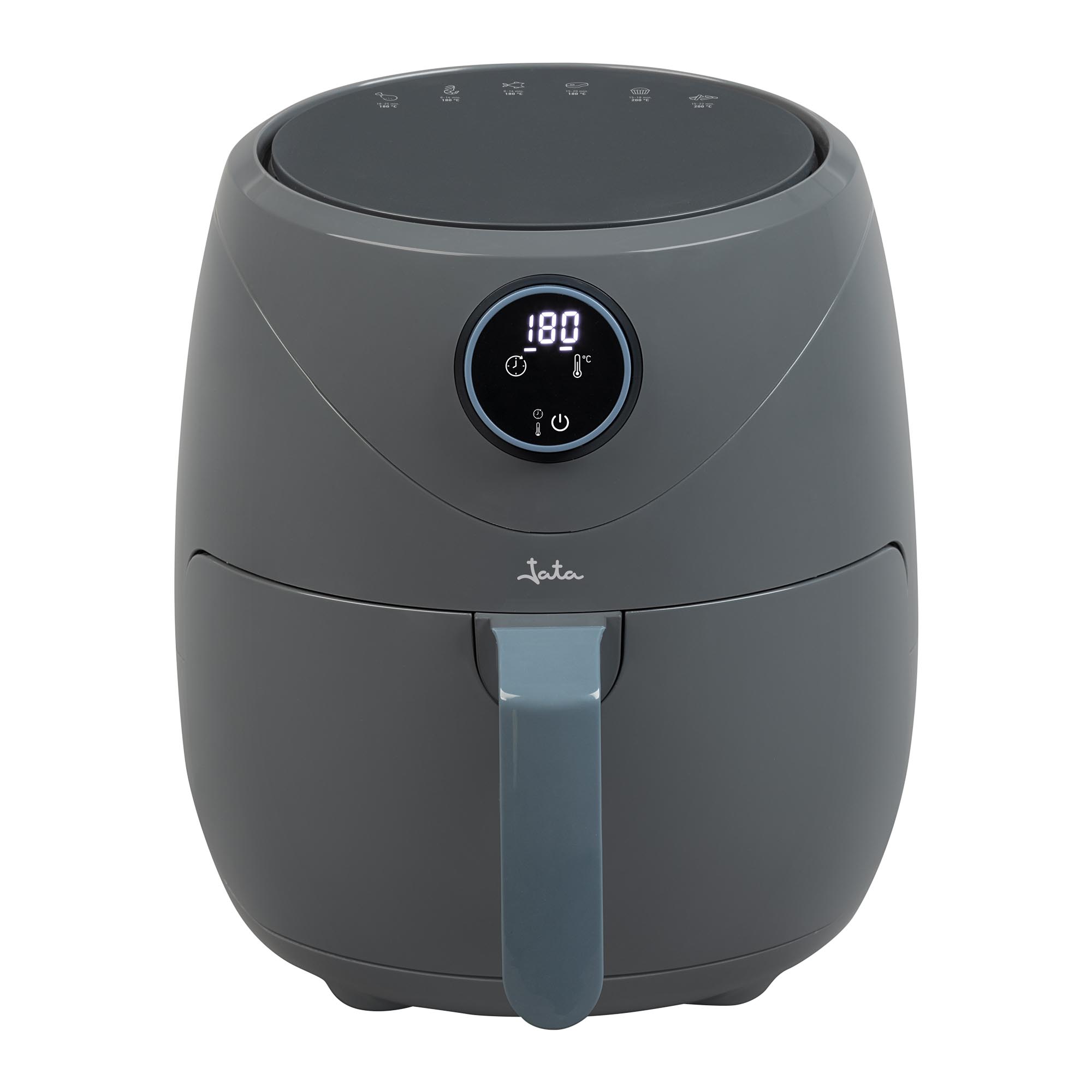 Oil-free cooking Capacity: 5 L Adjustable temperature control 200ºC max Compact and elegant design for any kitchen Control panel Buttons: time/temperature selector Temperature indicator Non-stick basket Constant temperature due to fast air circulation 60-minute timer Basket diameter: 23 cm. Height: 13 cm BPA-free Power: 1450 W Voltage: 230 V