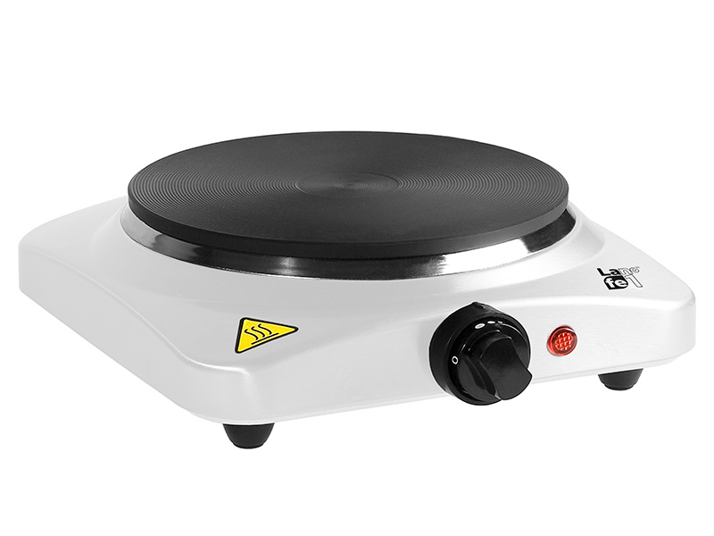 Single-plate electric cooker with a maximum power of 1500W. It has an adjustable thermostat through a knob on the front and an indicator.