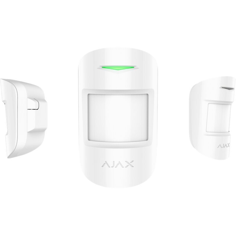 The Ajax MotionProtect White is a wireless motion detector with pet immunity, designed to detect human movement indoors while ignoring pets. It's an essential component of the Ajax security system, providing reliable room protection against intrusion and reducing false alarms. Its white color helps the detector blend discreetly into lighter interiors. The detector uses a passive infrared (PIR) sensor with a coverage angle of 88.5° horizontal and 80° vertical, capable of detecting motion up to 12 meters away. A key feature is its pet immunity: it ignores pets weighing up to 20 kg and standing up to 50 cm tall, thanks to smart algorithms and Fresnel lens design. This ensures that an alarm is not triggered when your beloved pet moves around the house. Ajax MotionProtect employs Ajax's proprietary Jeweller radio technology, ensuring secure and encrypted two-way communication with the Ajax Hub up to 1200 meters in open space. This guarantees lightning-fast alarm signal delivery – in just approximately 0.15 seconds. The detector is equipped with temperature compensation, ensuring effective detection across various temperatures (from -10°C to +40°C). Its operating life can reach up to 7 years on a pre-installed CR123A battery, minimizing maintenance needs. The detector also includes tamper protection, signaling any attempts to detach it from its mount or open its casing.