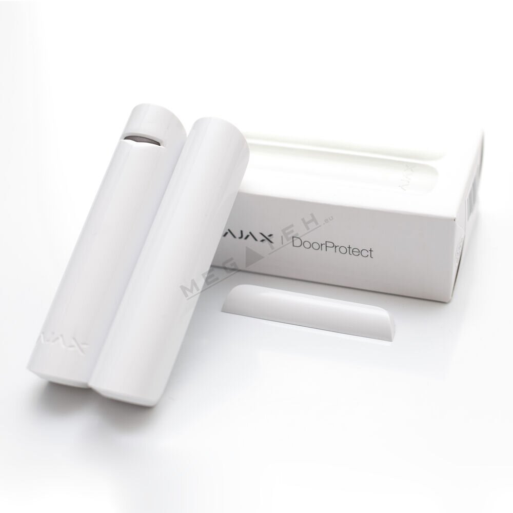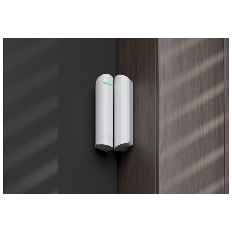 The Ajax DoorProtect White is a wireless magnetic opening detector designed for installation on doors and windows to instantly signal their opening. It's a crucial element in the Ajax smart security system, ensuring a rapid response to potential intrusions. Its clean white finish allows the detector to blend discreetly into lighter interiors. The detector consists of two parts: the main unit with a reed switch and a magnet. When a door or window is opened, the magnet moves away from the main unit, breaking the magnetic field and triggering an alarm. The set includes two magnets of different sizes – a large magnet that operates up to 2 cm away, and a small magnet that operates up to 1 cm away. This provides flexible installation options for various types and thicknesses of frames and door leaves. Ajax DoorProtect utilizes Ajax's proprietary Jeweller radio technology, ensuring secure and encrypted two-way communication with the Ajax Hub up to 1200 meters in open space. This guarantees lightning-fast alarm signal delivery – in just approximately 0.15 seconds. The detector is equipped with tamper protection, which immediately reports any attempts to detach it from the SmartBracket mounting panel or open its casing, thus providing high anti-sabotage protection. The device operates on a pre-installed CR123A battery, offering an excellent operating life of up to 7 years, minimizing maintenance needs. Furthermore, it features an external contact (NC type), allowing for the connection of third-party wired detectors, expanding the system's functionality.