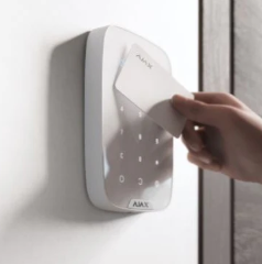 The Ajax KeyPad Plus is an innovative wireless touch keyboard that combines a sleek design with advanced security features. It offers a convenient and reliable way to control your Ajax Hub system, utilizing various activation methods: individual codes, a duress code, or contactless access using Ajax Pass cards or Tag key fobs. The white color gives the keypad a clean and modern look that blends perfectly into bright interiors. The KeyPad Plus is equipped with an integrated DESFire technology card reader, providing top-tier encryption and copy protection. This makes it one of the most secure contactless access solutions on the market. You can assign up to 200 Tags or Pass devices, each with individual access permissions defined and their usage tracked. This is ideal for larger premises with multiple users or employees. The keypad also features an anti-tamper system with lockout after several incorrect code entries, as well as a duress code function, allowing you to send a silent alarm to a monitoring station while seemingly disarming the system. Thanks to Ajax's Jeweller radio technology, KeyPad Plus maintains stable two-way communication with your Hub system up to 1700 meters in open space, guaranteeing fast response and reliable operation. The keypad is equipped with adjustable backlighting and sound indication, which reflects the system status without needing the Ajax app. Powered by four AA lithium batteries, the KeyPad Plus provides an impressive operating time of up to 4.5 years (3.5 years with the contactless reader active), reducing the frequency of battery changes. Installation is quick and simple, thanks to the SmartBracket mounting panel and QR code scanning in the Ajax mobile app.