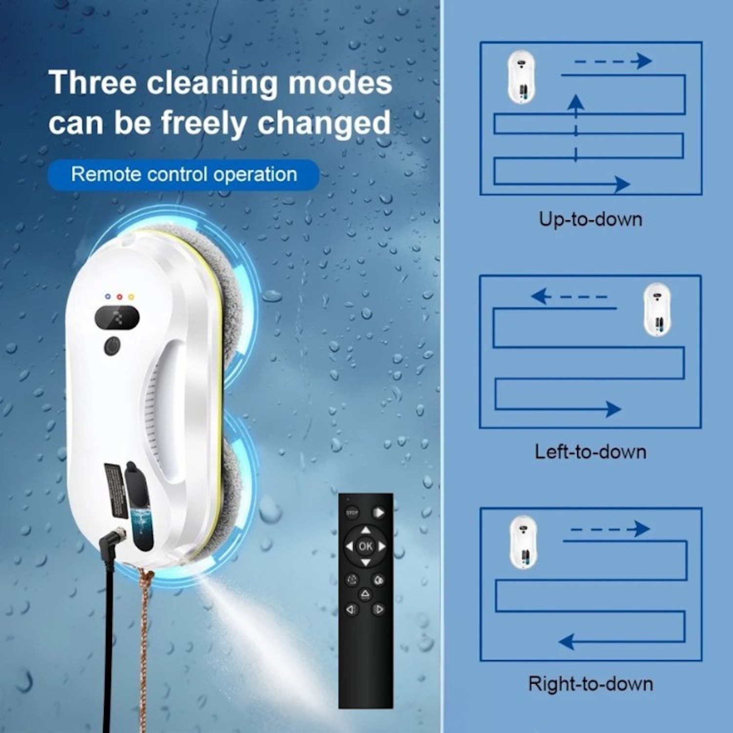 Smart window cleaning robot – an advanced device designed for cleaning windows, mirrors, and tiles. Integrated high-energy unidirectional ultrasonic water spray technology guarantees effective cleaning, leaving surfaces impeccably clean and streak-free.