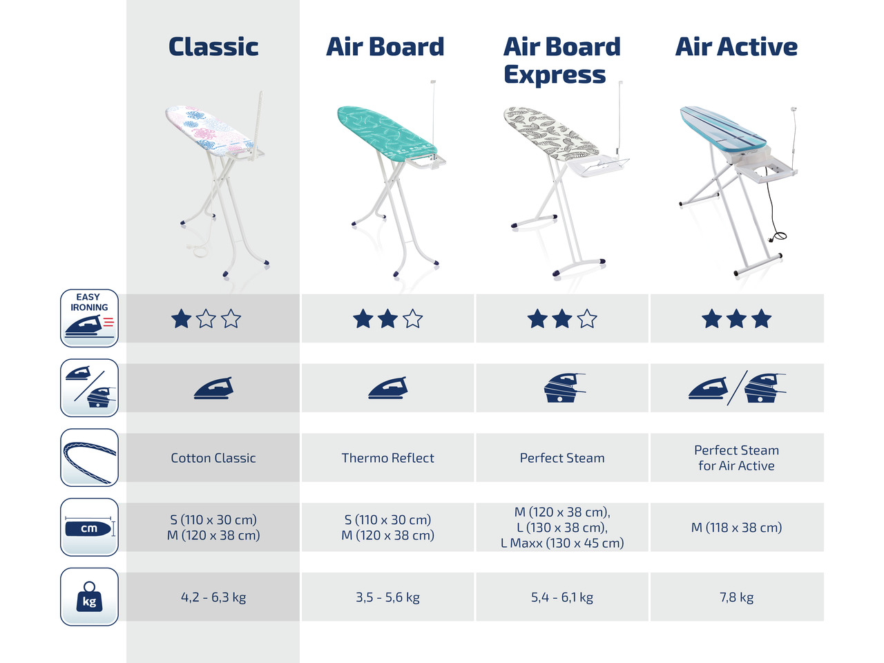 Triikimislaud Leifheit Classic S Basic, klassikaline venitatud metallist triikimislaud raamiga, mille mõõdud on 110x30 cm. Kompaktne metalse raamistikuga triikimislaud, reguleeritava kõrgusega kuni 87cm. Auru läbilaskev puuvillase katte tehnoloogia tagab kvaliteetse triikimise kergema vaevaga. Laua katte paksus on 2mm. Varustatud eriti tugeva lapselukuga, mis võimaldab ka mugavat laua liigutamist ning ei ole ohtu, et laud ootamatult lahti läheks. Leifheiti triikimislaudu iseloomustab suurepärane vastupidavus, kõrge kvaliteet, mugavus, kergus, pikk garantiiaeg ja unikaalsus.