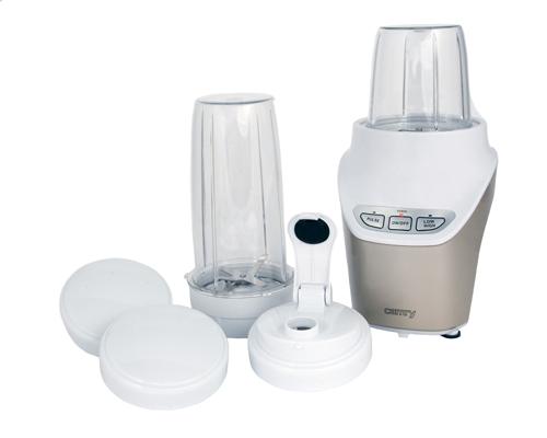 Nutri Pro Professional Blender CAMRY CR 4071 is a perfect choice for all those who start the day with a healthy breakfast in the form of a fruit or vegetable cocktail, smoothie or simply for those who appreciate the quick preparation of foods in the kitchen. High quality, modern design and functionality also speak in favour of it! As well as the fact that you can take a cup of drink with you to work or training, or you can store it safely in the fridge. Just prepare your favourite drink and enjoy its taste!Spring and summer are seasons that just ask for the use of fruits and vegetables to prepare healthy and nutritious dishes. This is the time when many of us add healthy foods rich in vitamins and microelements into the diet. Nutri Pro Professional Blender CAMRY CR 4071 is a device that should be placed in the cabinet of every fan of healthy cuisine! Thanks to the easiness of use we can quickly prepare our favourite strawberry cocktail, pea cream-soup or banana smoothie!Health and convenience come firstA blender with high-power is the perfect choice if you want to add to your diet meals based on fruit or vegetable cocktails, drinks based on dairy products, sauces or healthy and smooth cream-soups. Especially if you do not want to spend a lot of time preparing them. A comfortable jar, two speeds and stainless steel blade will allow you to prepare your favourite drink just in a few seconds. Because the device has a pulse mode, you can add several ice cubes to it as well. Perfect refreshment during summer days! The 1L container will allow you to prepare a few portions of your favourite soup for all house members. The possibility of storing jars in the fridge helps to prepare dishes for the whole day or even a week!Blender for athletesThe set consists of two cups (1 and 0.5 litres) with lids that make possible to transfer their content. One of the lids of a travel cup has a closed mouthpiece. The fact that the drink could be taken with us immediately after its preparation, and without the need of pouring it into other dishes, makes it an ideal blender for athletes. A few minutes before the workout you can quickly prepare a protein or energy cocktail with your favourite ingredients and take it with you to training right away! The minimal power of the blender is 1000W and the maximum is 1700W. Thanks to that we will prepare a drink without lumps in just a few seconds! The high quality of the Nutri Pro Professional Blender will ensure its long-term use.Camry Premium CR 4071. Bowl capacity: 1 L, Rotational speed (max): 18000 RPM. Type: Sport blender, Product colour: Gold, Transparent, White, Control panel colour: Silver. Power: 1000 W, Power source: AC. Package type: Box. Number of cups: 1 pc(s), Packaging content: Manual 2 cups 1l and 0.5l 2 lids 2 types of blades