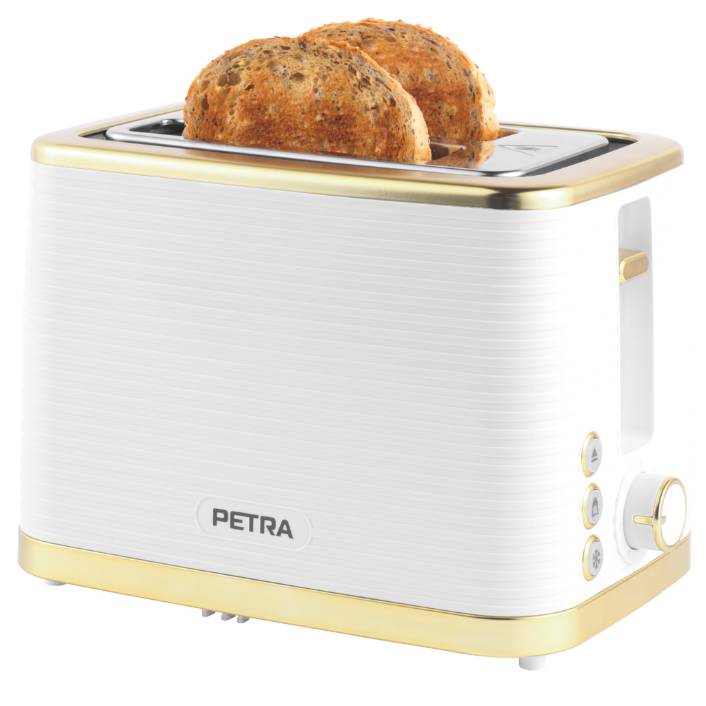 Bun topper: Warm rolls, pastries and muffins or lightly toasted bagels. 930W power: 7 different toasts Easy cleaning: Removable crumb tray Versatile: Defrost, cancel and reheat functions for breakfast and snacks. Elegant design: Sleek white colorway with gold accents.