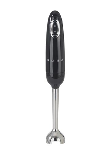 Hand blender 50's style The hand blender HBF11 from Smeg helps you quickly and confidently with a variety of tasks in the kitchen. It is ideal for the everyday and smooth preparation of home-made dishes. The hand blender can be used in a variety of ways - whether for pureeing, whisking, chopping or mashing. It has a variable speed button and an easy-to-reach ON/OFF switch. The ergonomically shaped handle with non-slip soft-touch insert ensures comfortable handling. Colour: Black