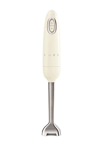 Hand blender 50's style The hand blender HBF11 from Smeg helps you quickly and confidently with a variety of tasks in the kitchen. It is ideal for the everyday and smooth preparation of home-made dishes. The hand blender can be used in a variety of ways - whether for pureeing, whisking, chopping or mashing. It has a variable speed button and an easy-to-reach ON/OFF switch. The ergonomically shaped handle with non-slip soft-touch inlay ensures comfortable handling. Colour: Cream