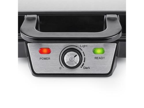 The waffle iron is practical in use thanks to the non-slip feet and indicator lights