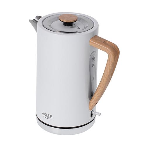 A modern 1.7-liter electric kettle, useful in every kitchen. Its safety is ensured by a lock that prevents turning on an empty kettle, and automatic shutdown after boiling water, and the STRIX safety control system. The functionality is increased by a stable base and a clear water level indicator. It has a maximum power of 2200W and is made of stainless steel, which makes it a master solution when it comes to quickly boiling water. The appliance is equipped with a protection against boiling without water.Adler AD 1347W. Water tank capacity: 1.5 L. Power: 2200 W. Product colour: White, Wood, Housing material: Stainless steel, Water level indicator