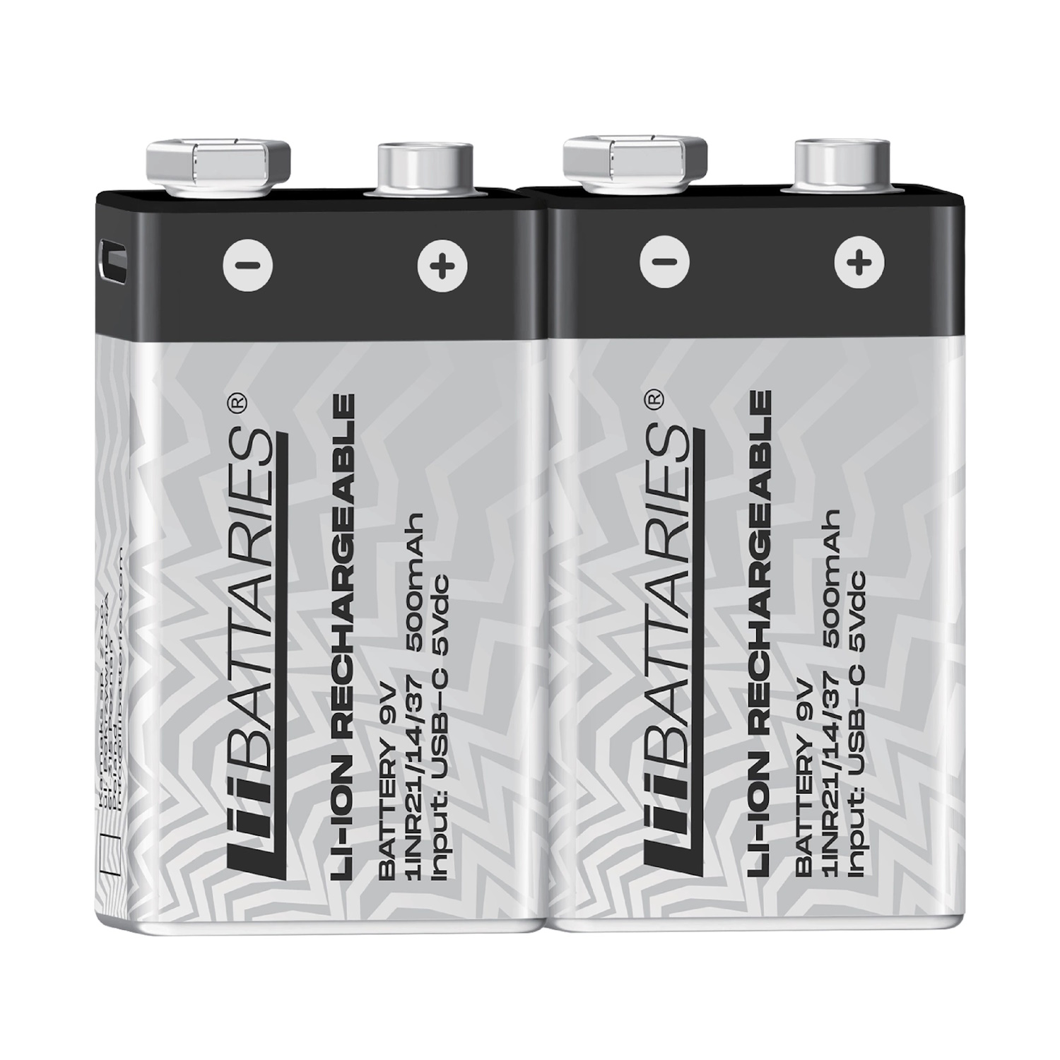 Liibattaries USB-C laetavad võimsad patareid Liitium-ioon 6F22 6LR61 MN1604 «Krona» 9V 500mAh 9V (2 tk) (LIB510781)