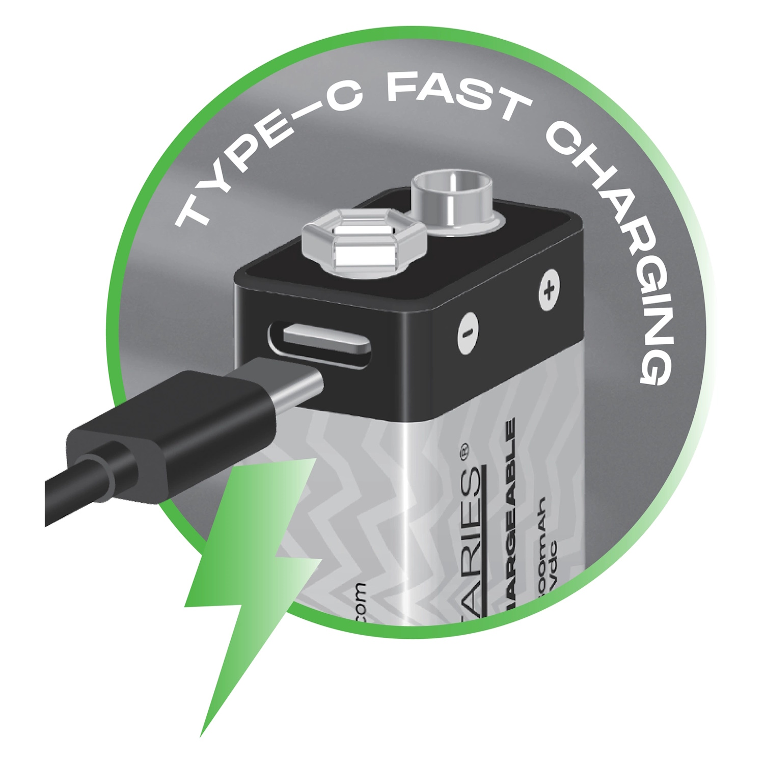 Nominal voltageTypical capacityInternal impedanceSpecific energyAllowable temperature rangeStandard charge/discharge currentLifespanCharge/discharge temperatureChoose a 9V battery with a USB Type-C port and enjoy a modern, convenient and eco-friendly power source
