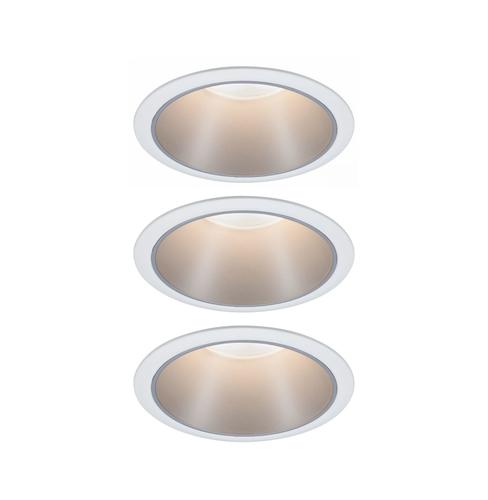 Love at second glance! The recessed luminaires Cole in white/silver blend almost seamlessly into the ceiling, thanks to the recessed lamps. Once you have spotted it though, you can hardly take your eyes off it. The light of the recessed coins on the matt silver surface provides soft, glare-free lighting. What’s more, they feature brilliant technology: The replaceable LED coins provide pleasant, warm white light and can be dimmed in three stages with a conventional light switch.Paulmann 934.10. Product colour: Silver, White, Suitable location: Universal, Shape: Round. Number of bulbs: 1 bulb(s), Total power: 6.5 W, Light colour: Warm white. Power source type: AC, Input voltage: 230 V, AC input voltage: 230 V. Fixation material: Steel, Compatible bulb energy efficiency classes (old): A, A+, A++, Included bulb energy efficiency class (old): A++