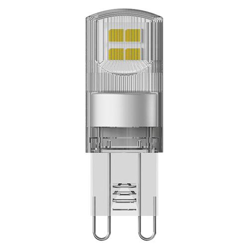 - Outdoor applications only in suitable luminairesOsram STAR. Bulb power: 1.9 W, Equivalent bulb power: 20 W, Fitting/cap type: G9, Luminous flux: 200 lm, Bulb lifetime: 15000 h, Light colour: Warm white, Colour temperature: 2700 K, Beam angle (max): 300°, Color Rendering Index (CRI): 80, Power factor: 0.4