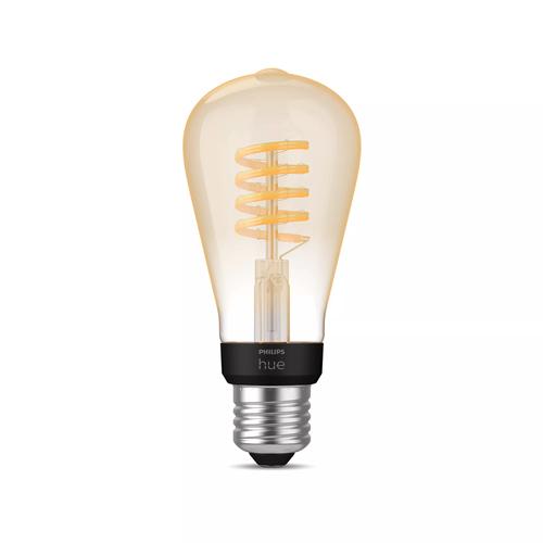 Philips ST64 – E27 smart bulb. Type: Smart bulb, Interface: Bluetooth/Zigbee, Bulb type: LED. Energy efficiency class: G, Power consumption (standby): 0.5 W, Power consumption (max): 7 W. Width: 60 mm, Depth: 60 mm, Height: 133 mm. Package width: 7.2 mm, Package depth: 7.2 mm, Package height: 17.6 mm. Quantity per pack: 1 pc(s), Number of hue bulb(s) included: 1 bulb(s)