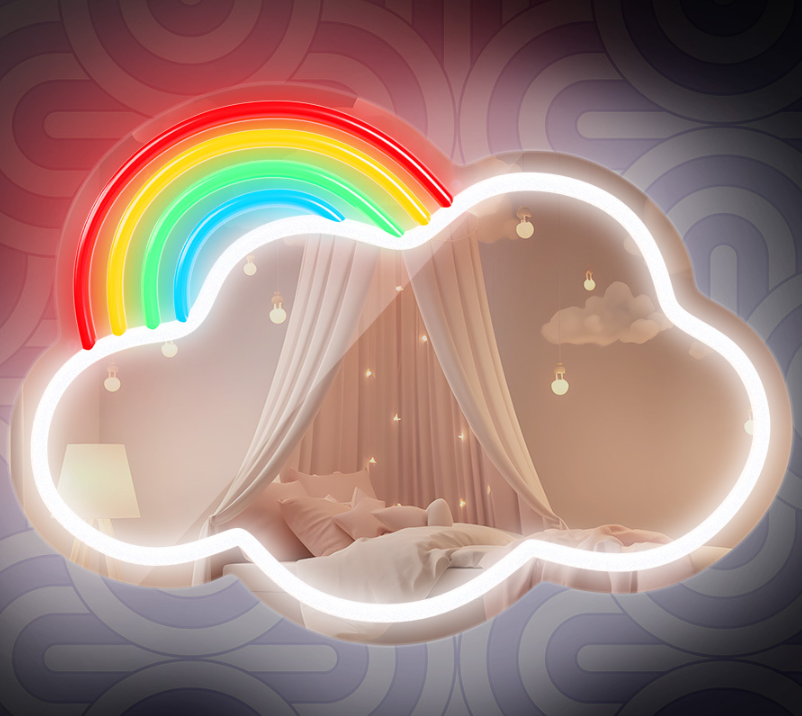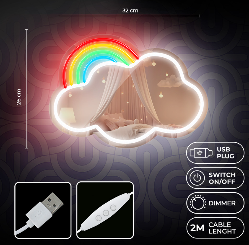 Neon MIRROR LED is a combination of ambient lighting and a practical mirror, surrounded by a stylish neon frame. The LED light creates a cozy and relaxing atmosphere, making it perfect for both interior decoration and as a practical mirror for everyday use. Its versatile application makes it ideal as a decoration in service salons as well as in home spaces.