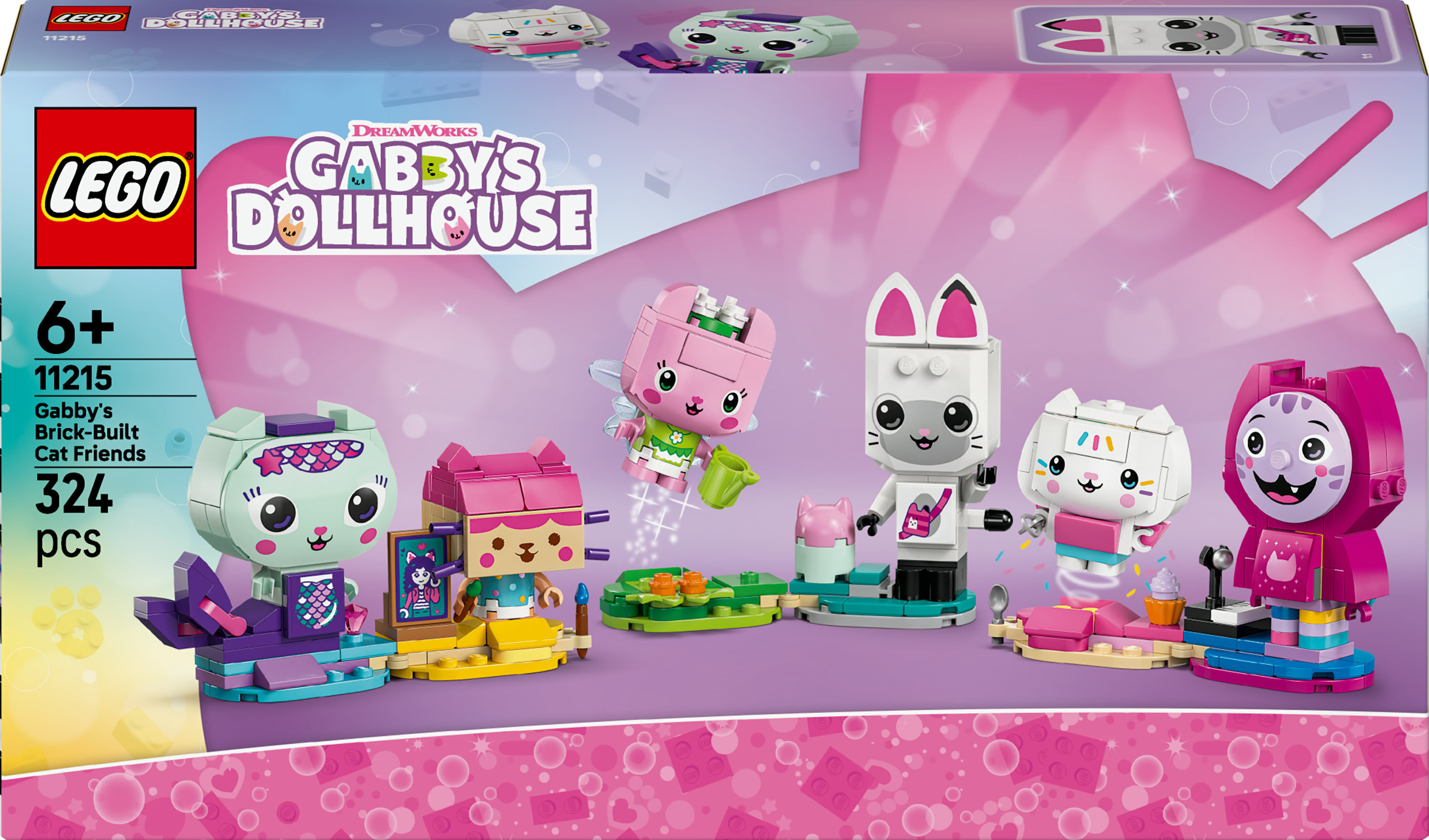 Eläinaiheinen Gabbyn palikoista rakennettavat kissaystävät ‑setti (11215) sisältää 6 Gabbyn nukketalo ‑sarjasta tuttua hahmoa. Rakennuslelu sopii 6 vuotta täyttäneille tytöille ja pojille. Setin parissa lapset voivat rakentaa tuttuja hahmoja, leikkiä suosikkitarinoitaan ja keksiä omia mielikuvitusseikkailujaan. Samalla myös taidot kehittyvät.