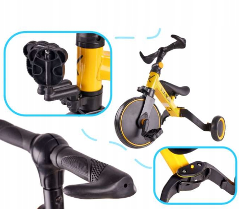 Päris lõpus seisab teie võsukesel ees kõige raskem ülesanne – saate tagumised rattad kokku voltida nii, et need oleksid lähestikku. See nõuab lapselt tasakaalu säilitamist ja annab talle enne päris kaherattalise jalgrattaga sõitmist suurepärase õppetunni!