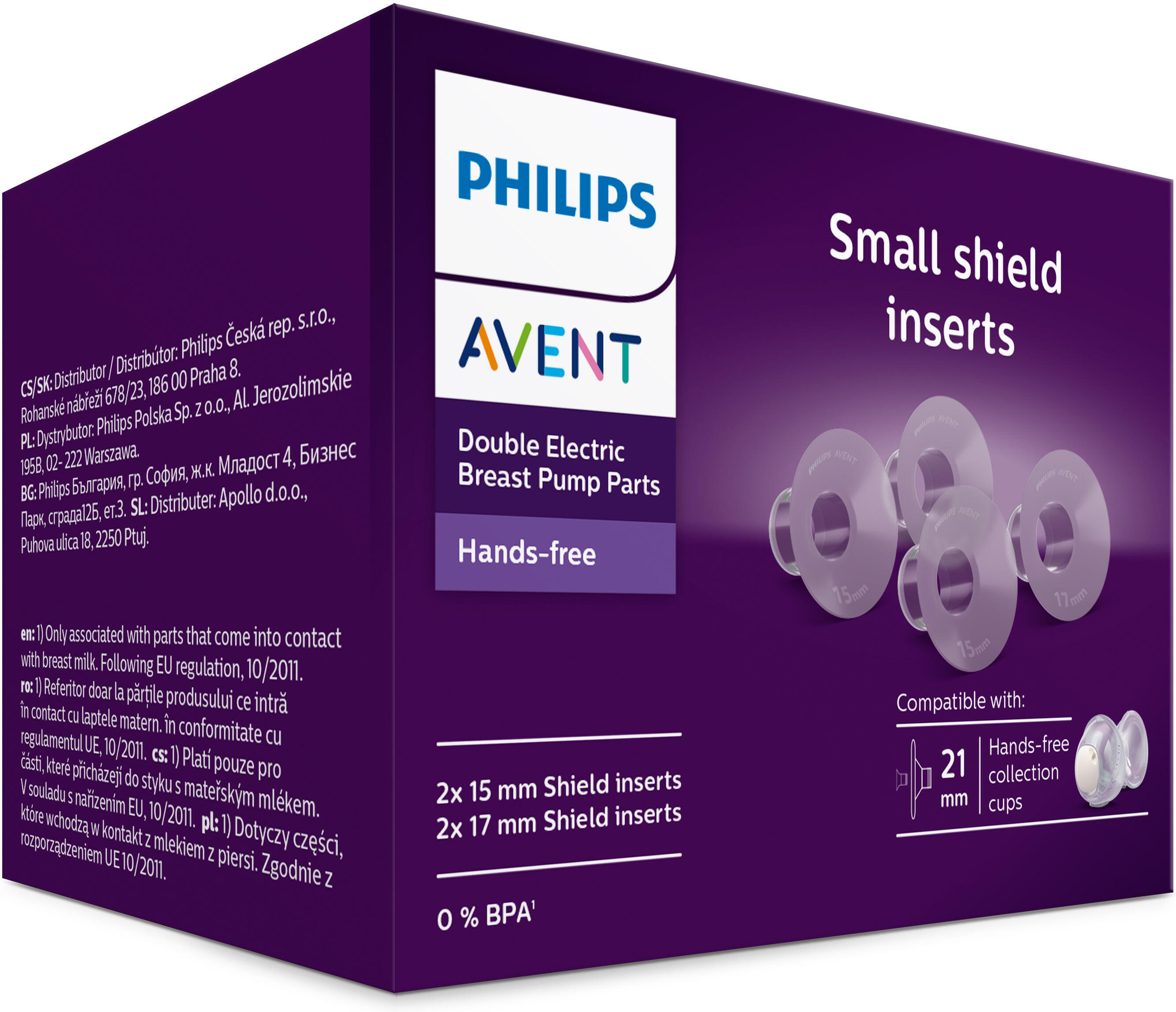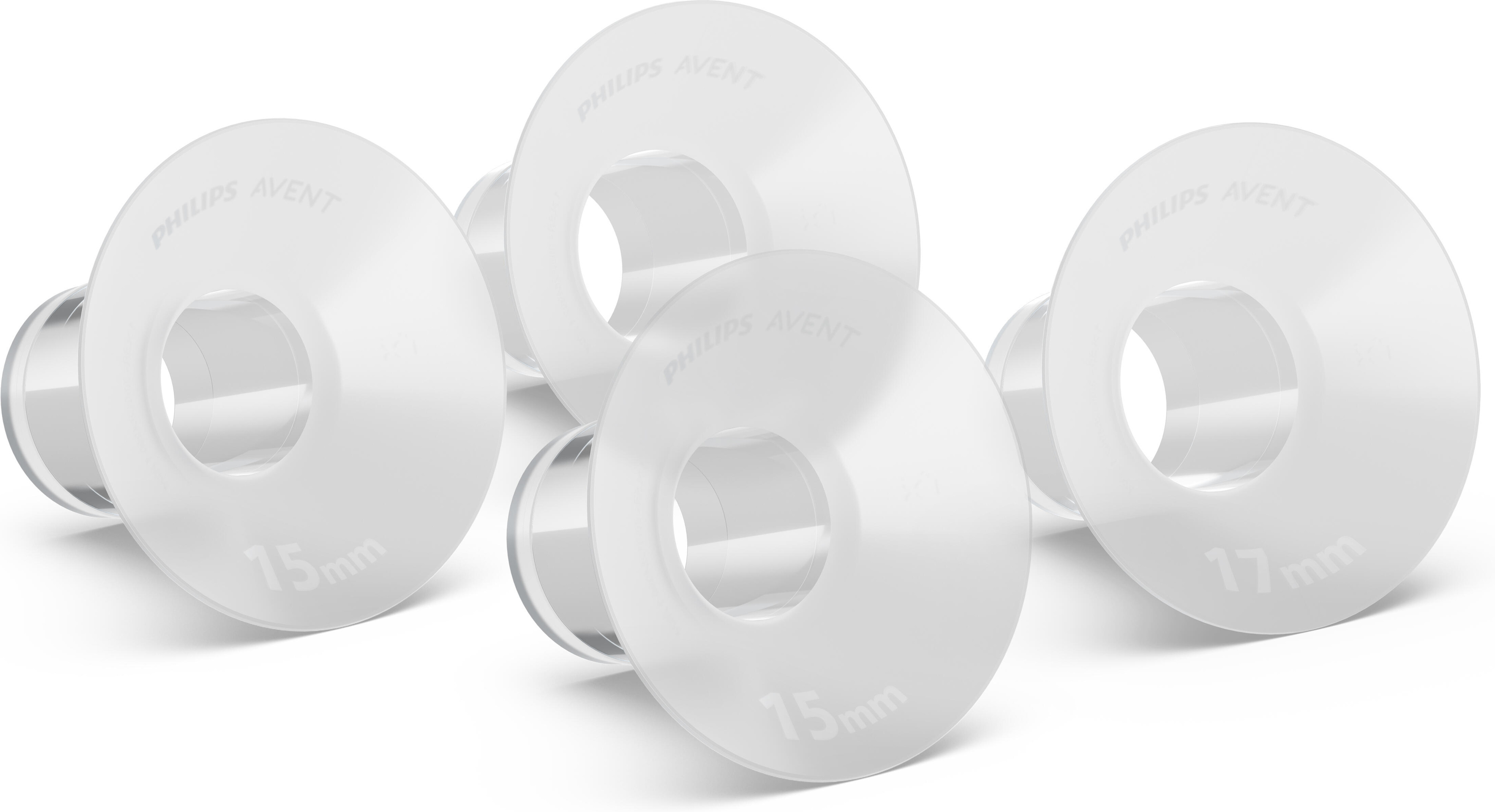 The 15 mm and 17 mm inserts that come in the pack are specifically designed for smaller breast sizes. They work together with 21 mm breastpads and Philips Avent Hands-Free Collection Cups to provide a comfortable and efficient pumping experience. Finding the right size is important for both comfort and pumping efficiency.