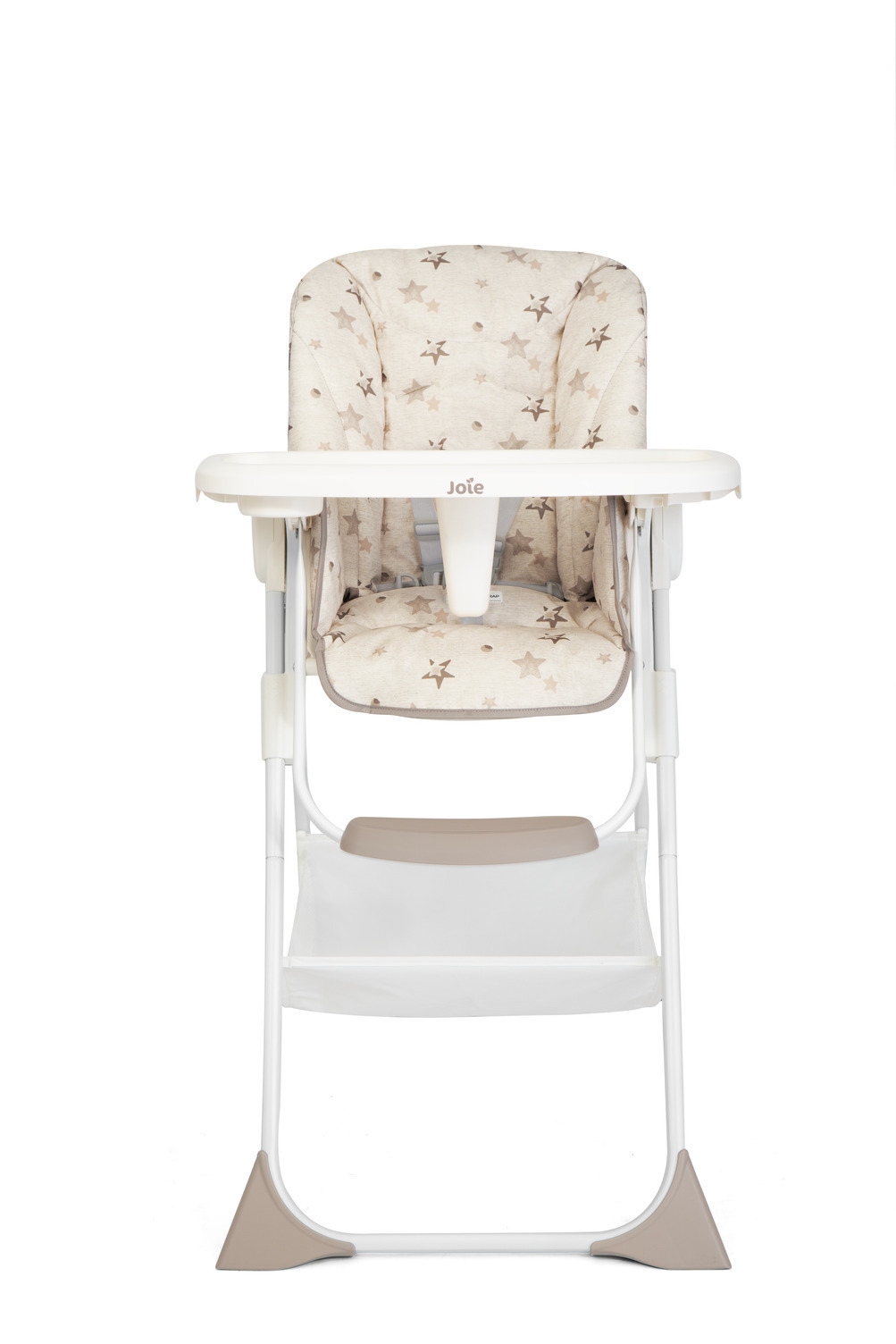 The Joie Snacker 2-in-1 high chair with aluminium frame is suitable for use by a sitting toddler, first as a traditional high chair and later, thanks to the height adjustment, also as a high chair at table level. The folding mechanism is easy to open with one hand and can be folded up into a free-standing model at the end of the meal. The back of the chair can be tilted to three different angles. The chair's removable tray also has a depth adjustment and a handy recess for a beak cup. Padded 5-point harness keeps your little one safely in the seat throughout the meal.