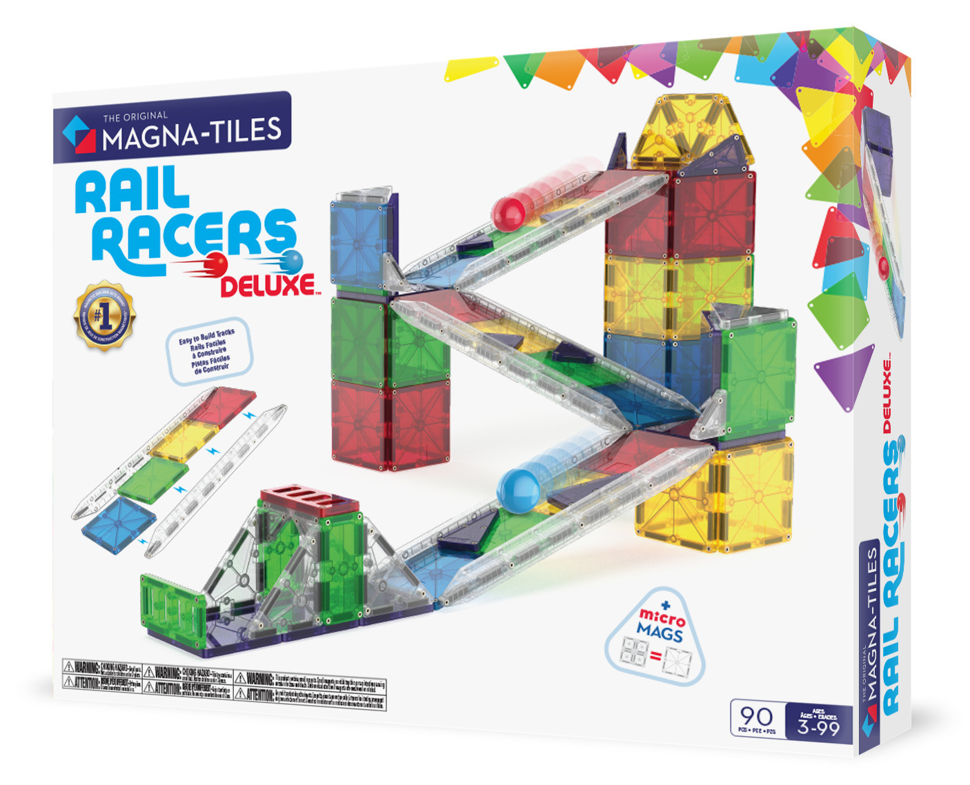 Build imaginative Deluxe balloons with MAGNA-TILES' large magnetic build and play set. MAGNA-TILES® Rail Racers Deluxe is a 90-piece magnetic building set that brings action-packed play and endless creativity to kids of all ages. The set includes transparent rails and innovative microMAGS parts to easily design dynamic race tracks, ramps, bridges and towers!
