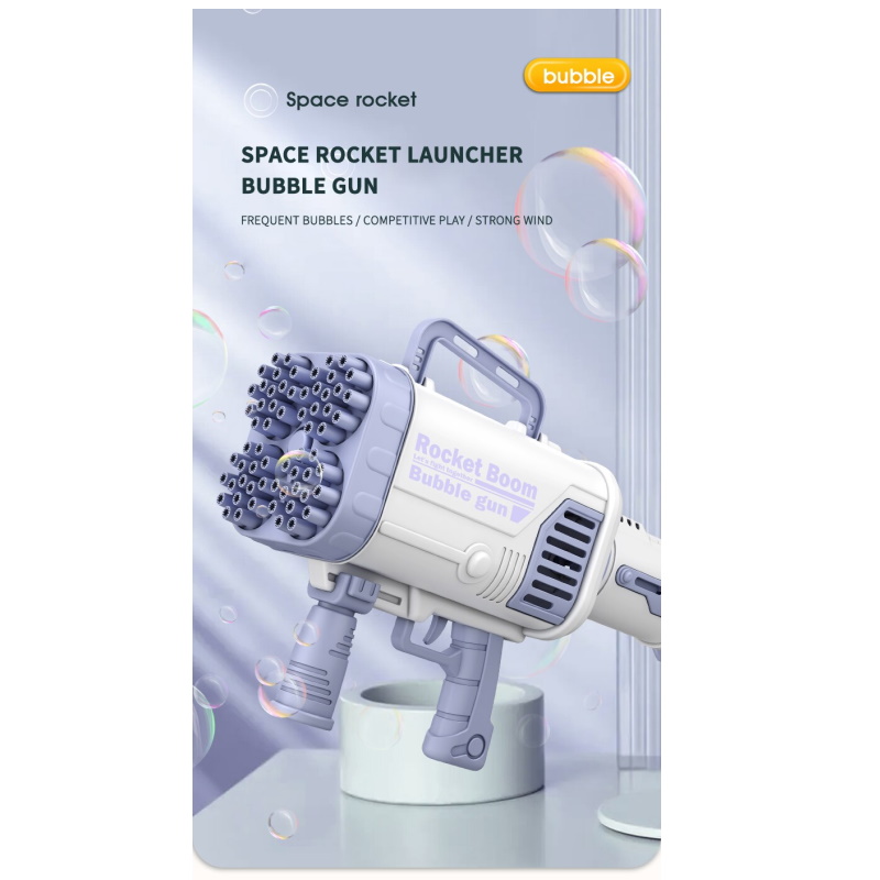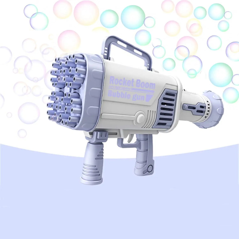 [2022 Upgraded Rocket Launcher Bubble Machine ]-The bubble machine has 64 bubble holes, our bubble maker can generate more than 5000+ bubbles per minute, comes with rechargeable battery and bubble liquid,besides, it comes with colorful light to bring you amazing effect .More bubbles more fun![Great Value Bubble Maker Set]-The bubble machine set comes with 2 bottles and 6 packs of bubble water(60ml per bottle, each two packs can be converted into a bottle of bubble liquid by adding appropriate water).So no need worry about running out of bubble water ,just have fun& enjoy the colorful bubble world![High Quality Materials & ECO-Friendly Design]- Made from Nontoxic and high quality ABS plastic for superior toughness and rust protection.Comes with rechargeable 2200mAh battery ,the bubble is sustainable use and Eco-friendly !Take down the bubble machine head and turn it into a small fan, it will bring cool and comfortable wind.[Suitable for Various Occasions]-The rocket bubble machine is a great toy for date, birthday parties, stages, weddings, barbecues, Christmas, etc. It's a perfect prop for a photo.You can take perfect photos and videos with it.[Best Gift for Kids & Friends]-The safe and portable design makes it be a surprise gift for families.Our bubble machine can bring endless fun and dreamy atmosphere in a series of activities such as weddings, birthdays, parties, outdoor garden yard etc. The bubbles for Kids toddlers is definitely perfect outdoor toys and great gift for toddlers, kids & pets.