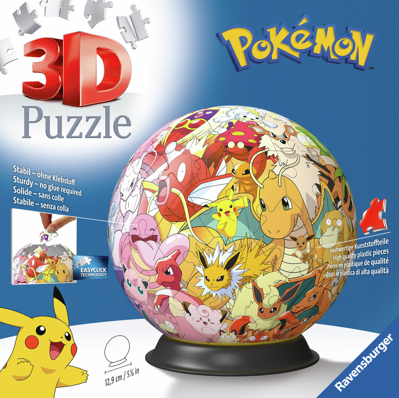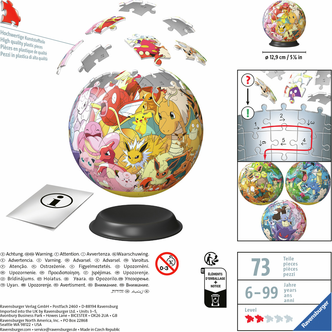 Sukeldu Pokémoni maailma uuel viisil Ravensburgeri 3D-puzzlesfääri abil! See ainulaadne ja lõbus kolmemõõtmeline puslekonseptsioon elustab Kanto piirkonna armastatud Pokémoni tegelased imeilusas 73-osaline sfääris. Tänu Easy Click tehnoloogiale sobituvad pusle tükid täiuslikult kokku ilma liimita, muutes kokkupanemisest sujuva ja naudinguväärse.