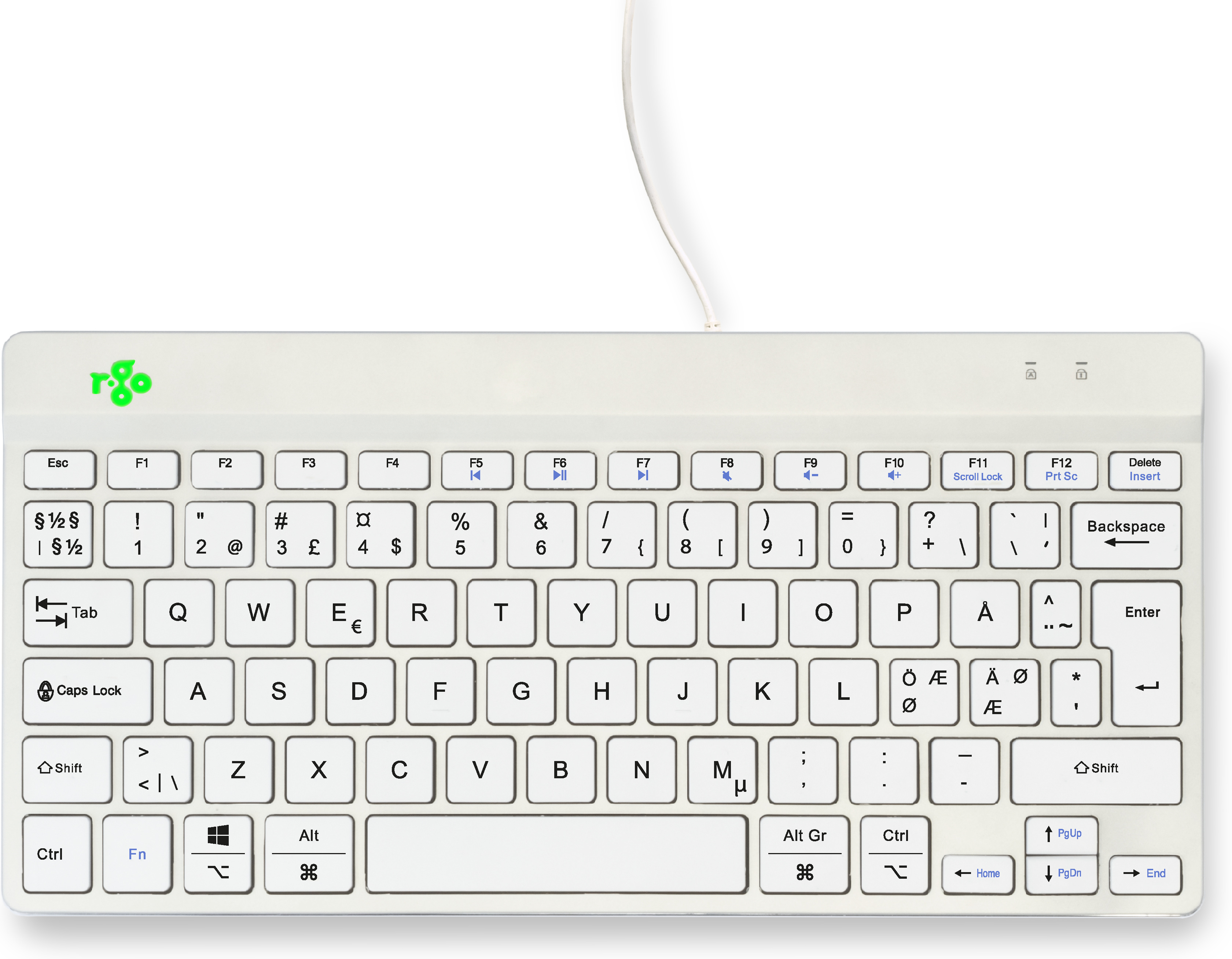 R-Go Kompaktne vaheaja-ergonoomiline klaviatuur pausiprogrammiga, juhtmega, valge (RGOCONDWDWH)
