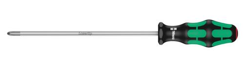 High quality Kraftform Plus screwdriver. Multi-component Kraftform Plus handle for pleasant, ergonomic working that makes blisters and calluses a thing of the past. Hard gripping zones for high working speeds whereas soft zones ensure high torque transfer. "Take it easy" tool finder with colour coding according to profiles and size stamp – for simple and rapid accessing of the required tool. The hexagonal non-roll feature prevents any rolling away at the workplace.Wera 350 PH. Width: 37 mm, Length: 305 mm, Height: 37 mm. Country of origin: Czech Republic
