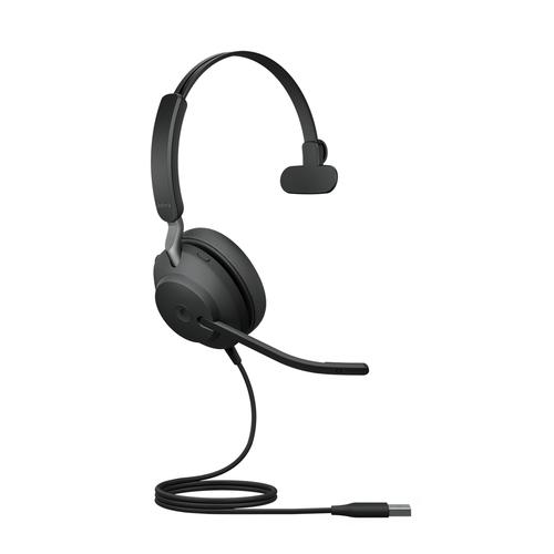 Stay on task with exceptional audio, superior noise isolation and comfort.Jabra Evolve2 40 SE USB-A, MS Mono. Product type: Headset. Connectivity technology: Wired. Recommended usage: Calls/Music. Headphone frequency: 20 - 20000 Hz. Weight: 113 g. Product colour: Black